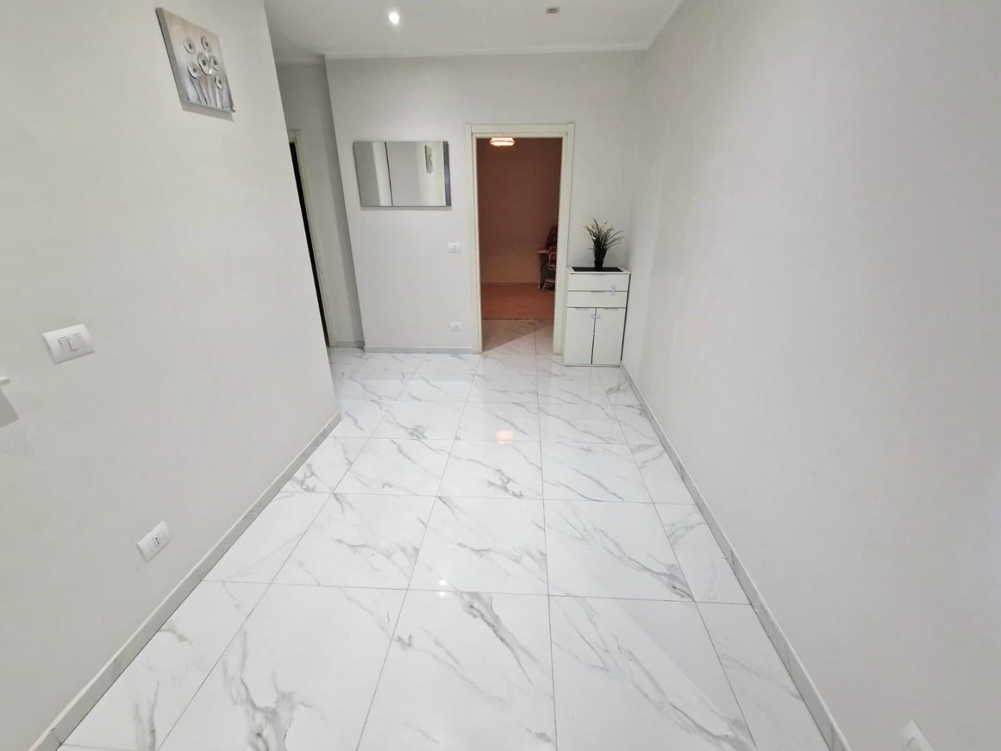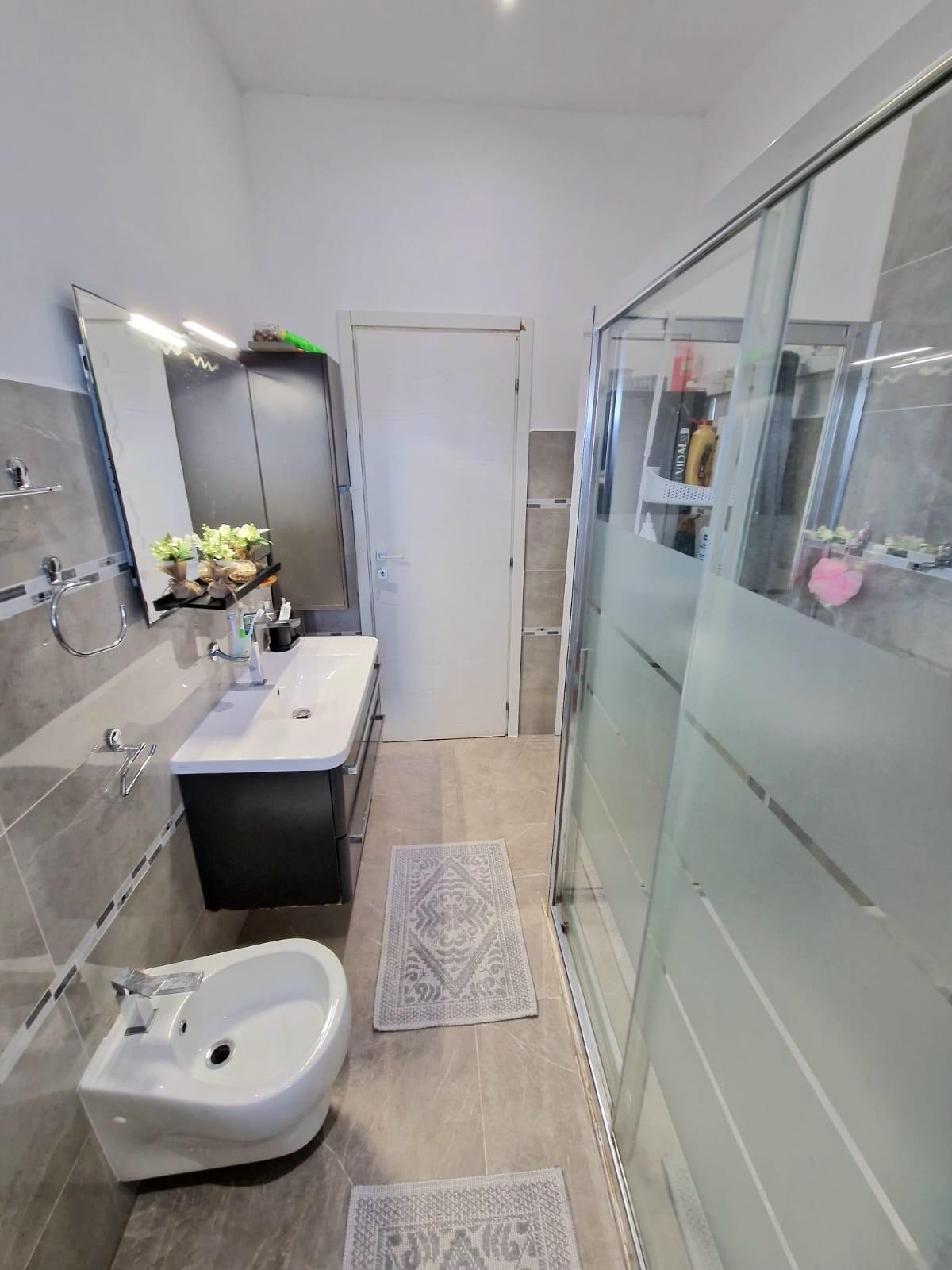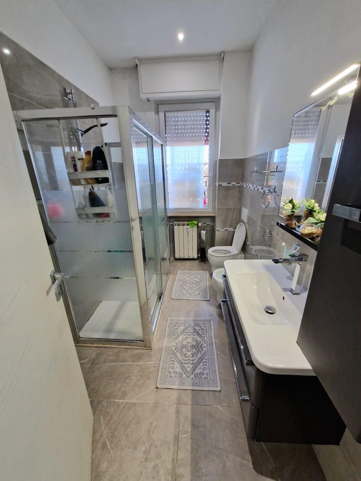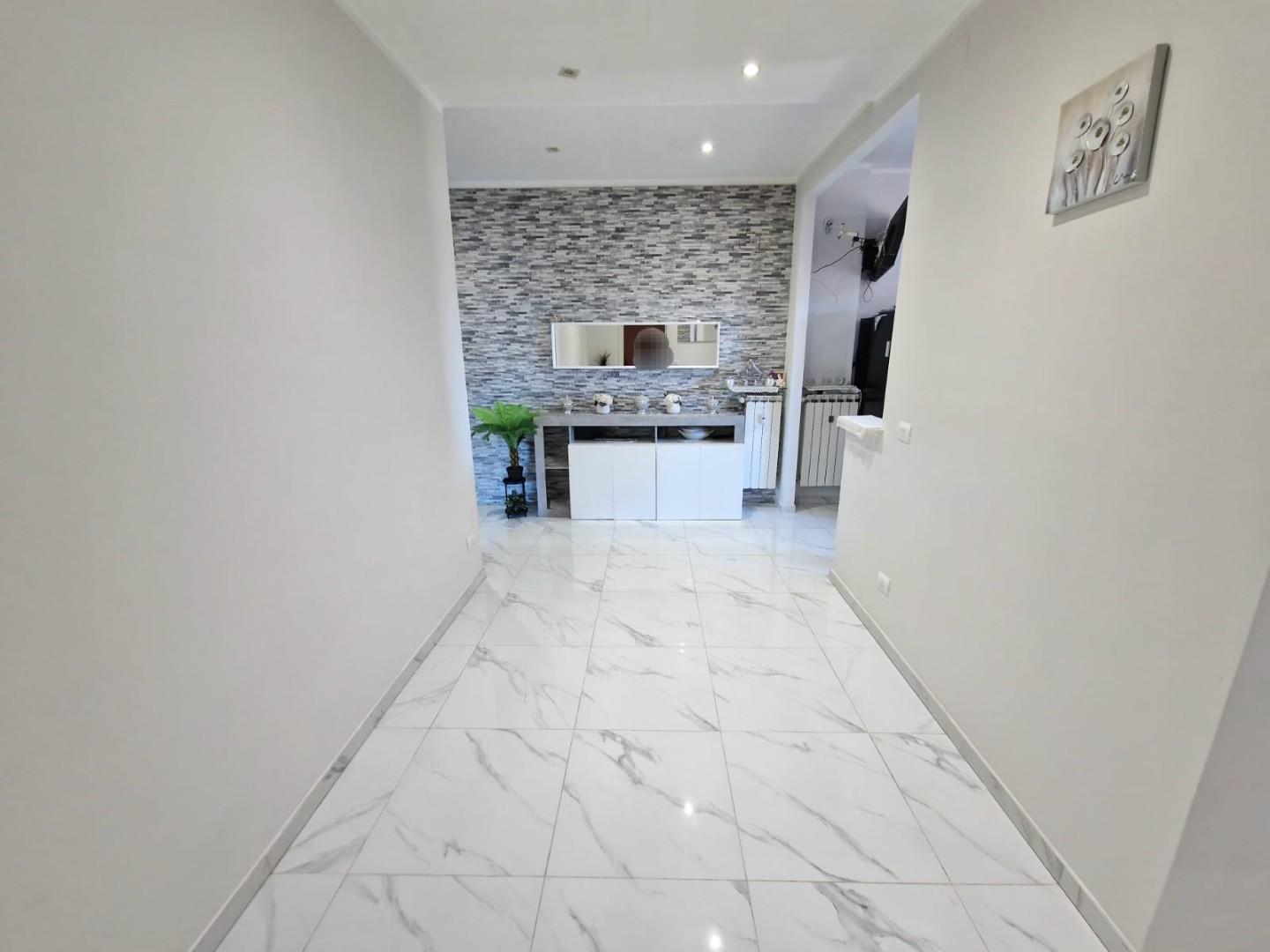 L'appartamento è così composto: entrando ci accoglie l'ingresso/disimpegno che conduce ai vari ambienti e nell'ordine troviamo uno splendido SALONE DOPPIO collegato a pratico balcone con attacchi idrici, proseguendo troviamo la cucina abitabile anch'essa collegata ad un terrazzo pranzabile; tramite un disimpegno notte molto ampio raggiungiamo le due camere di cui una matrimoniale e una doppia, e il bagno finestrato con doccia. L'appartamento si presenta in ottime condizioni in quanto è stato recentemente COMPLETAMENTE RISTRUTTURATO, con infissi in pvc, impianti nuovi, aria condizionata, e non necessita di nessun tipo di lavoro. Completa la proprietà un posto auto assegnato permanentemente all'abitazione in area condominiale recintata.
