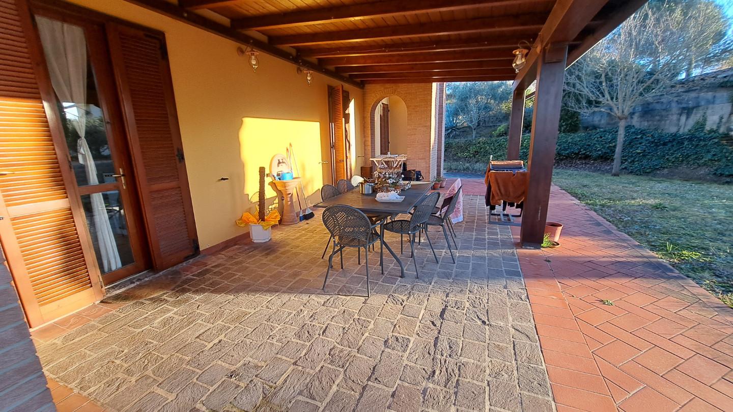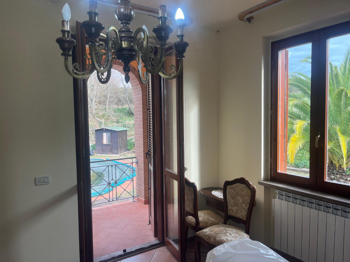 Scopri questa splendida villa in vendita a 10 chilometri da Castelfalfi. Questa proprietà dall'ottimo stato è composta da 7 locali su più livelli, con una superficie di 250 metri quadrati. Questa casa offre un mix perfetto di modernità e tradizione. Si accede alla casa dall'ampio giardino in cui si trova una bella piscina. La casa è costituita da salotto con caminetto , cucina abitabile che si affaccia sul bel loggiato coperto, due camere matrimoniali e bagno; sull'altro lato della villa salotto, altro bagno, camera matrimoniale e due balconi, ampia mansarda con lucernario, stanza armadi. Al piano seminterrato garage, lavanderia e stanza pluruso. Il giaridno è completamente recintato. Prezzo: 600.000 Euro