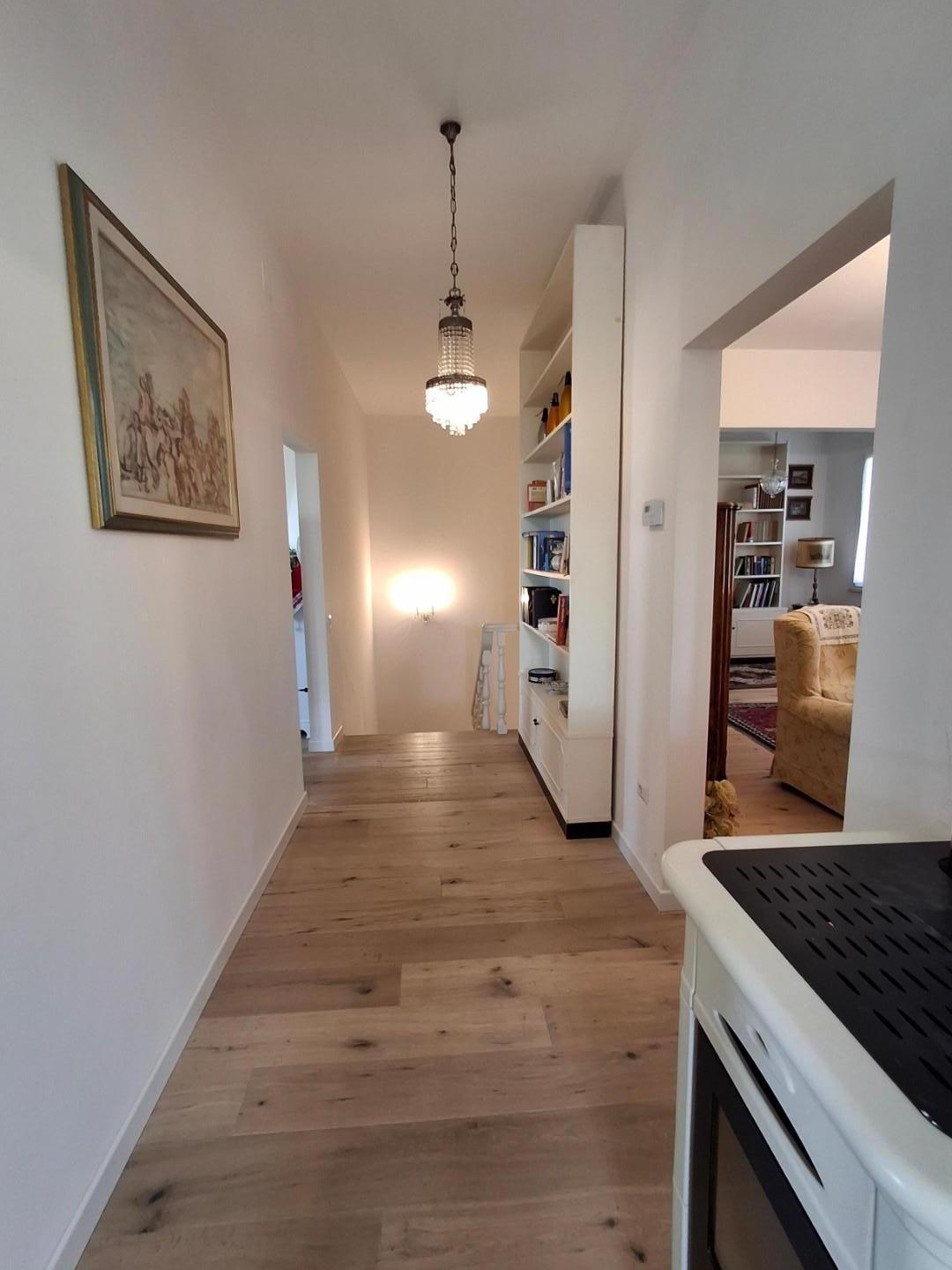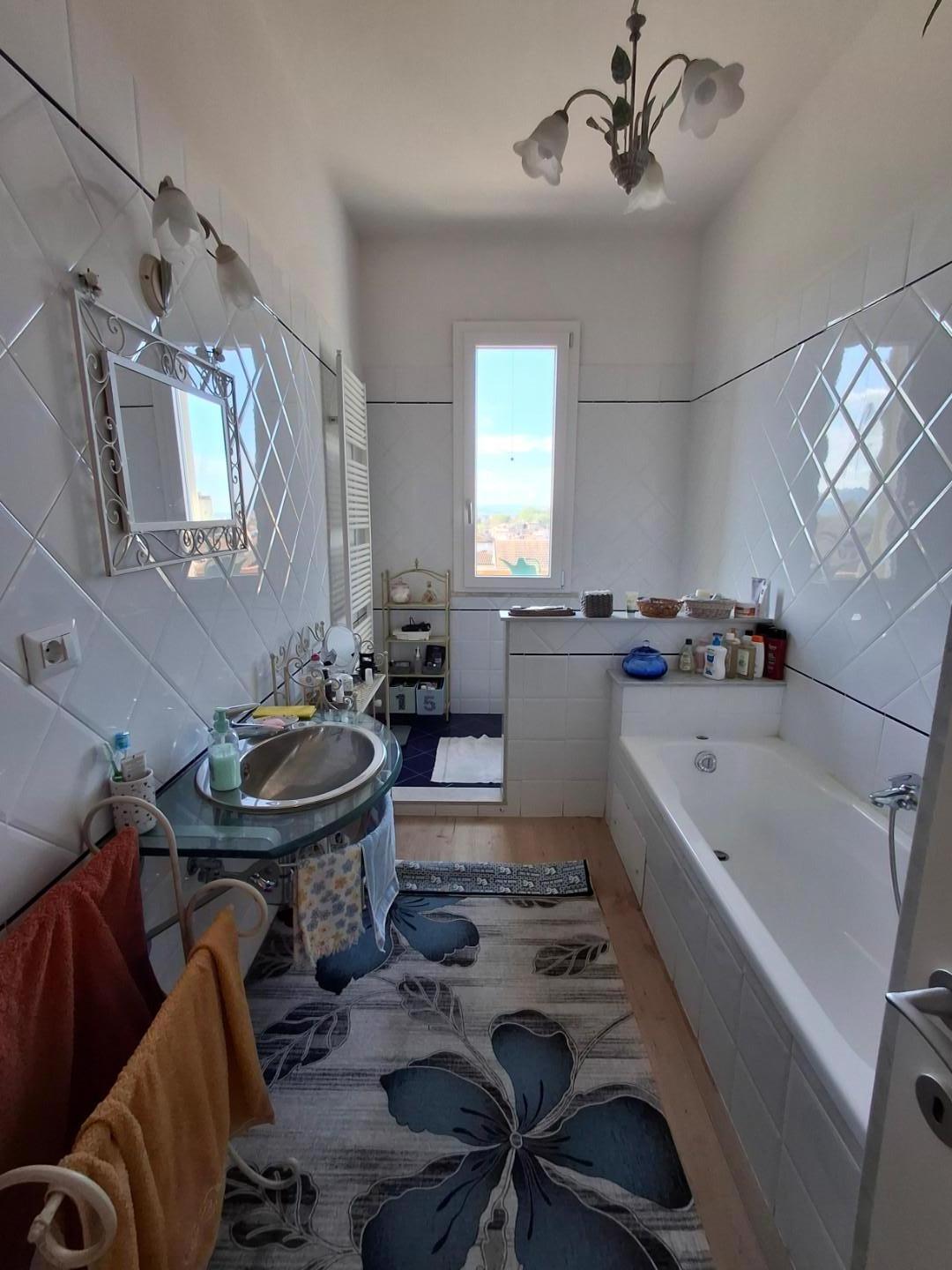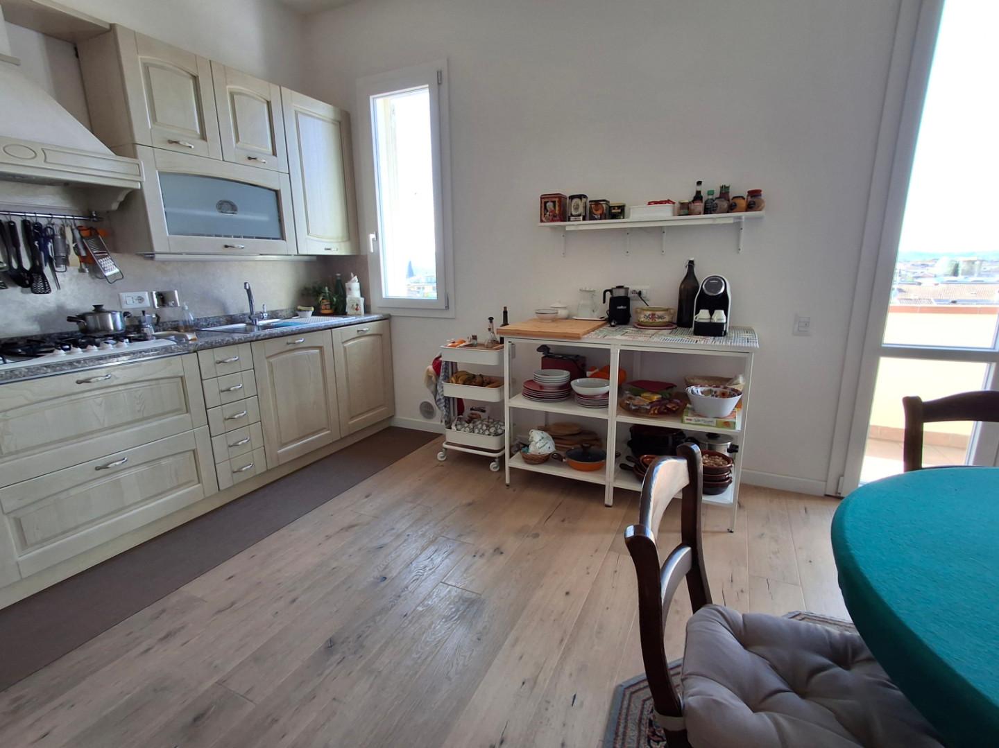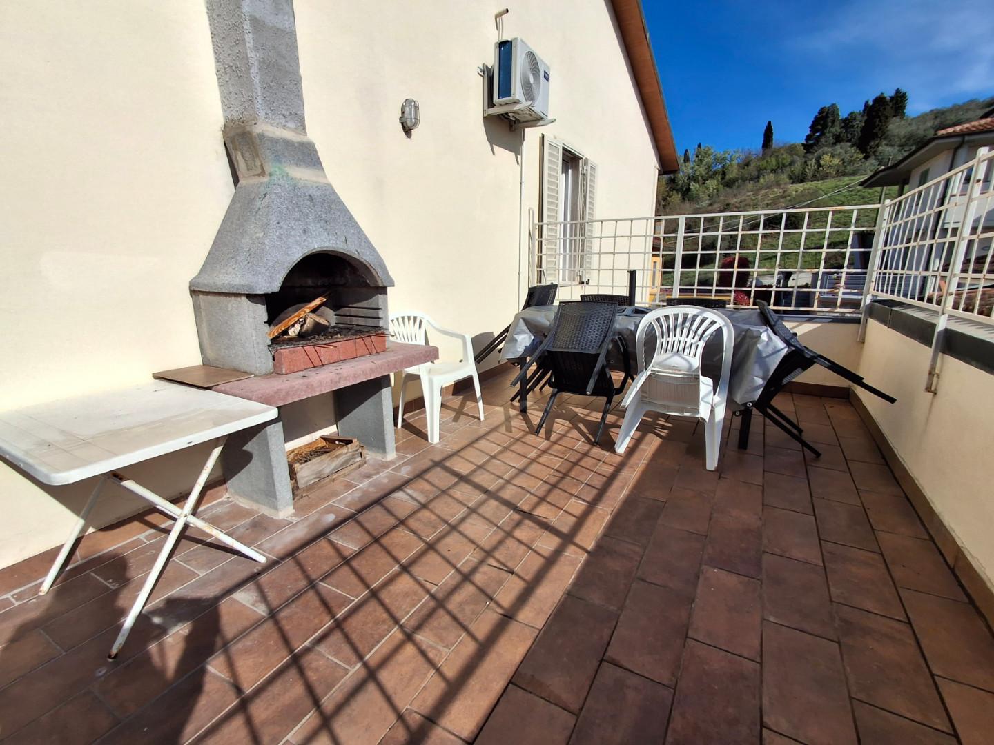 LIMITE SULL'ARNO. In bella posizione dominate e ubicato in via percorsa solo da chi vi abita, bell'appartamento in bifamiliare, libera su quattro lati, posto al primo ed ultimo piano con ingresso indipendnete. L'appartamento molto arioso e luminoso in ottimo stato di manutenzione è composto ad ingresso a piano terra e ampia scala che giunge al piano, costituito da ingresso, tinello-pranzo con camino e cucina a vista che accede ad una terrazza abitabile dalla quale si può godere un bellissimo panorama, sala ampia, due camere matrimoniali, bagno con doccia e vasca, ripostiglio finestrato con accesso alla soffitta, possibilità di realizzare la terza camera; al piano seminterrato collegato internamente all'appartamento si trovano un'ampia taverna, altro vano e due bagni uno dei quali con lavanderia, oltre a ripostiglio. L'appartamento si completa di un resede di proprietà con accesso carrabile. L'immobile è rifinito in parquet, gli infissi sono nuovi di ultima generazione, ci sono le zanzariere e pompa di calore nella taverna. Molto interessante per la posizione, vicina a tutti i servizi e particolarmente bello perchè offre una splendida vista e una luminosità naturale che lo rendono particolarmente piacevole da vivere. Il prezzo è di 360.000 Euro. [Classe energetica: In attesa di certificazione]
