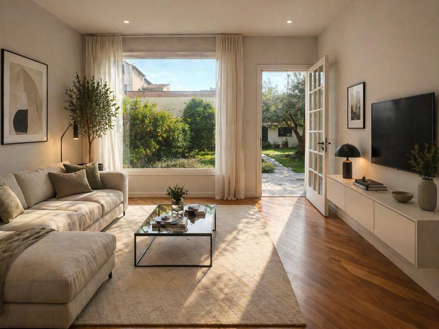 Al piano terra troviamo un’accogliente zona ingresso, un ampio e luminoso soggiorno con affacci sul giardino, una cucina abitabile con accesso diretto all’esterno e una spaziosa stanza polivalente, perfetta come salotto, studio o facilmente trasformabile in garage. Completa il piano un comodo bagno di servizio.